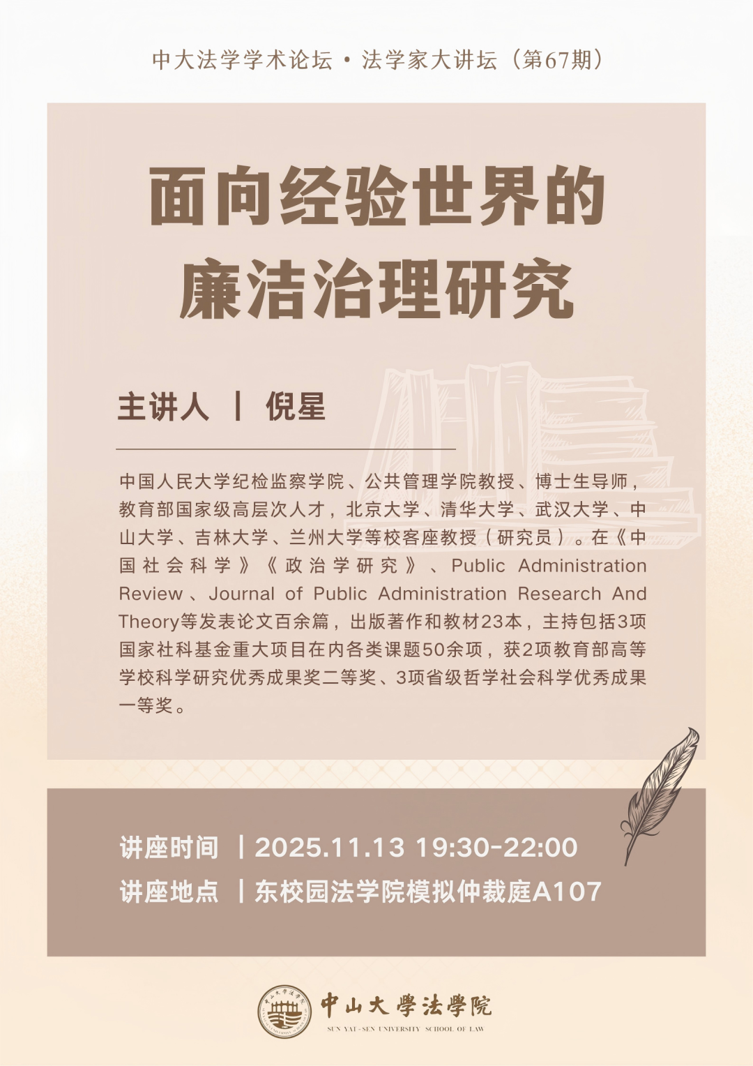 中大法学学术论坛 • 法学家大讲坛(第67期): 面向经验世界的廉洁治理研究