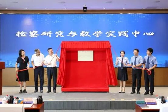 随后,梅成达书记、张亮院长、侯雪莹副书记与许玲华检察长、吴岳龙副检察长、甘晓辉主任共同为“检察研究与教学实践中心” 揭牌。该中心将作为双方开展科研合作、案例研讨、实习及人才培养的重要基地,为法学教育与检察实务搭建常态化互动桥梁。